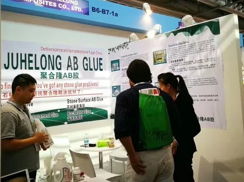 本次展会为我公司受邀参加的第一次海外展会,主要展示聚合隆石材AB胶系列产品:如JHL-3015高强度渗透胶、JHL-3018石材面胶(白板特供)及JHL-5011真空灌注胶等等产品。通过此次展会聚合隆公司向海外石材厂商展示了针对不同石材问题用不一样的石材AB胶来解决,同时通过现场交流,收集了潜在的海外客户,进一步了解海外石材用胶的最新情况,为聚合隆公司开拓海外市场奠定了夯实基础。