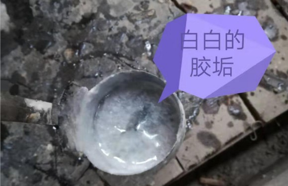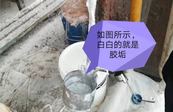 2、石材AB胶的配比:必须严格按照产品标签所示的重量比调配(建议使用精确度高且刻度小的电子秤或者使用根据石材AB胶不同密度量身订做的比例杯);且每天上班使用比例杯前清理杯中胶垢(如下所示),尤其是B胶;建议在下班时把比例杯都倒扣过来放;